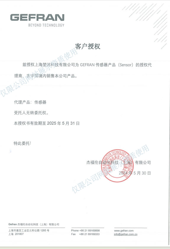 上海堃沛科技有限公司成立于2021年,是一家专业的传感器供应商,产品广泛应用于塑机、压机、橡胶机械、印刷、移动机械、汽车非标自动化、制冷、生物医药等行业。我司为GEFRAN集团中国一级代理商,产品包括:压力传感器、磁致伸缩位移传感器、电子尺、熔体压力传感器等。并且可按客户要求定制各种传感器,以满足客户的需求。堃沛以专业的售前技术支持、过硬的产品质量、良好的售后服务赢得了客户信任与支持,公司将以积极的态度和客户一起携手共赢未来。Company Profile Kunpei Technology (Shanghai) Co., Ltd. was established in 2021, it's a supplier specialized to provide customers with industrial sensors,which a